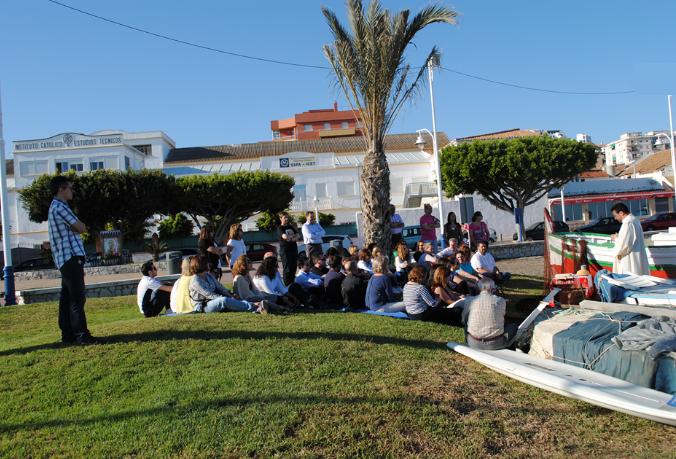 Para terminar, nos reunimos todos en la playa, en torno a una barca adornada para la ocasión y pudimos compartir la experiencia, además de recibir la “visita” de nuestro fundador, el Padre Ciganda (nuestro compañero Víctor Espinar), que contó cómo su vocación jesuita le llevó a querer solucionar los problemas que veía en el rebalaje de las playas de El Palo creando un centro para los más necesitados: el nacimiento del ICET.