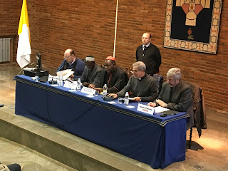 El Cardenal Nzapalainga y el Imam Niaibi crearon en la República Centroafriana una plataforma de diálogo interreligioso en respuesta a la violencia surgida en su país, en gran parte por intereses extranjeros, que quería vincularse con motivaciones religiosas. El encuentro comenzó con una presentación de la situación social y política de la República Centroafricana por el P. Jesús Ruiz mccj, antiguo alumno de la Facultad y misionero en aquel país. La narración del Sr. Cardenal y del Imam de sus acciones en favor de la paz y la justicia en su país fueron hondamente emotivas, especialmente los relatos de cómo tuvieron que protegerse mutuamente para salvar la vida del otro ante los radicales de cada uno de los bandos. La charla ha sido un gran estímulo al esfuerzo de la Facultad en el diálogo con el Islam