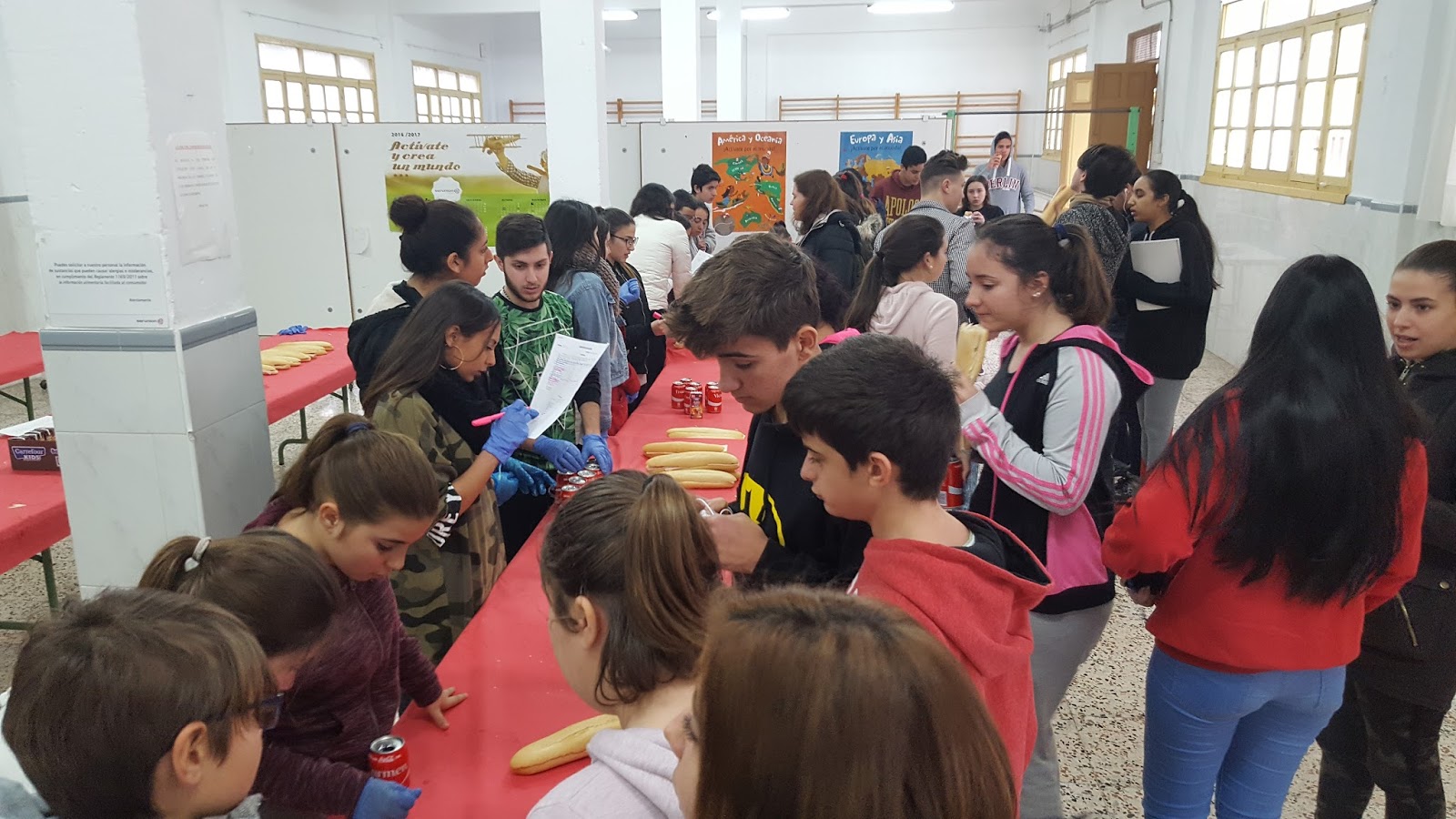 Un grupo de alumnos y profesores voluntarios de distintos cursos, estuvieron toda la mañana preparando bocadillos para tener todo a punto a la hora del recreo. Los tutores se habían encargado, coordinados por el Departamento de Pastoral, de preparar la organización y cobrar el donativo de 2 € con el que contribuimos al proyecto y concienciamos a toda la Comunidad Educativa. Recaudamos unos 700 € y pasamos un día solidario desayunando toda la Comunidad Educativa por una buena causa.
