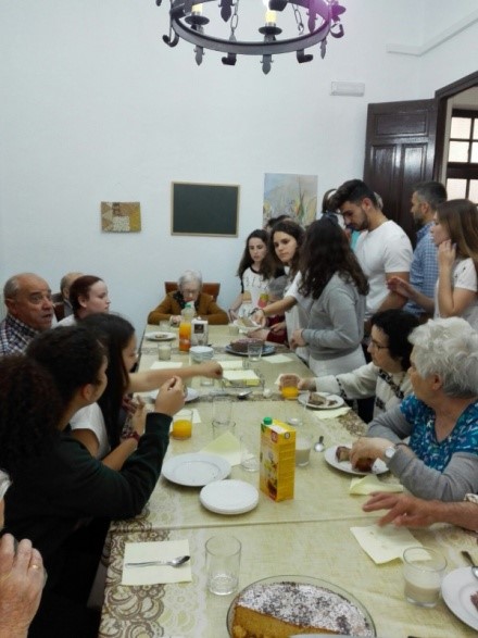 Los alumnos miembros de la Red, distribuidos en distintos días de la semana,  visitan a los abuelos y abuelas ingresados en dichas clínicas. Las tardes las dedican a hacer manualidades, jugar al bingo o simplemente hablar.  Es una de las labores más bonitas y entrañables a las que dedican los jóvenes voluntarios de nuestra escuela SAFA ANDÚJAR. Para terminar el curso escolar, organizaron una merienda: profesores voluntarios llevaron dulces y bebidas para festejar con los abuelos el final de ese acompañamiento. Fue una tarde en la que disfrutaron tanto los mayores como los alumnos, emotiva y a la vez divertida.